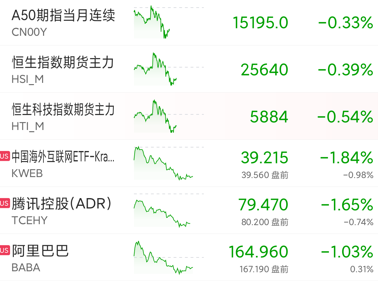 周三晚盘的期指表现也比较一般,盘中有明显的跳水下跌迹象,A50、恒生指数、恒生科技的期指均盘中小跌,另外晚盘中概股的表现也比较弱,日线级别有震荡阴跌的迹象,承受能力弱的短线需要小心。