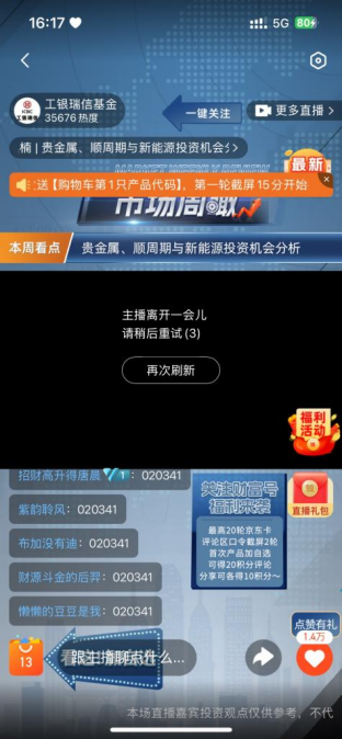 亲爱的小伙伴们,工银瑞信【贵金属、顺周期与新能源投资机会分析】直播已圆满结束,感谢大家对工银瑞信基金的信任与支持。