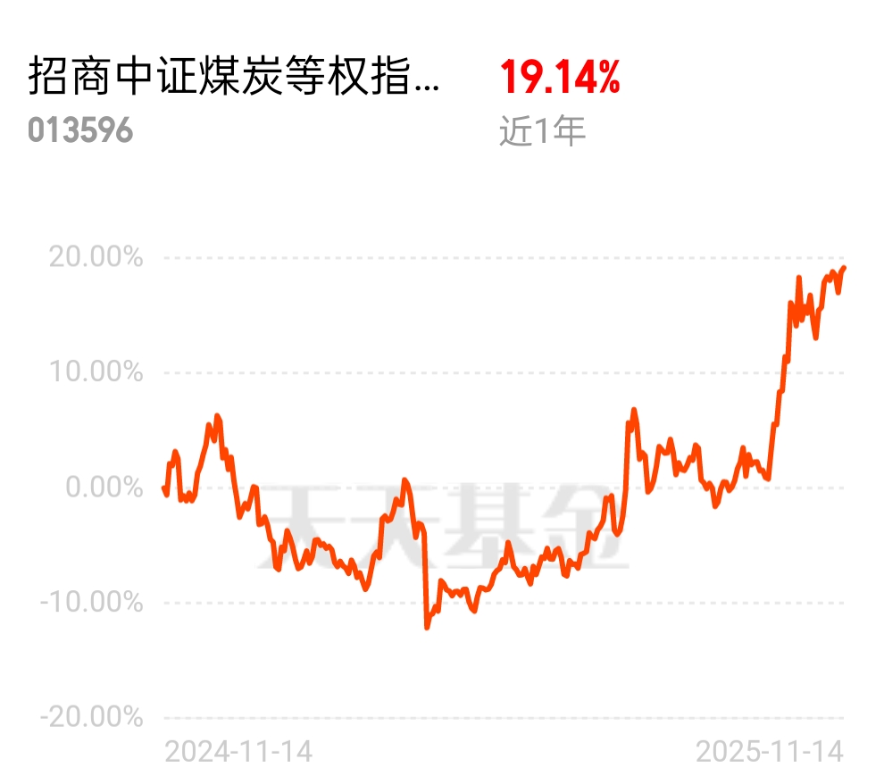 近期煤炭行业政策红利持续,融合新能源发展是大趋势,招商中证煤炭等权指数C近一年收