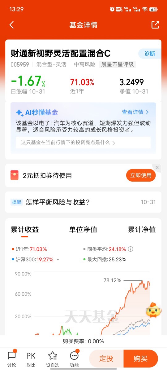 $财通新视野灵活配置混合C$说说我的投资目标,我目前投资基金是打算长期持有,我投