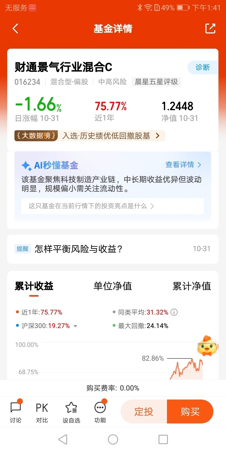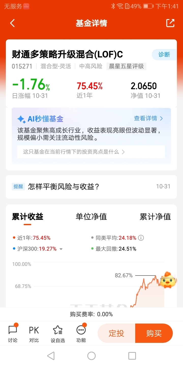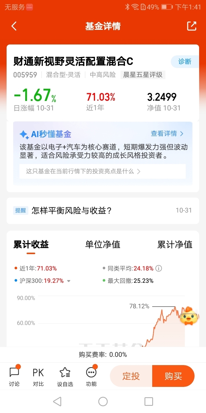 $财通新视野灵活配置混合C$我认为风险与收益的平衡点是持有时间的长短,从我进入投