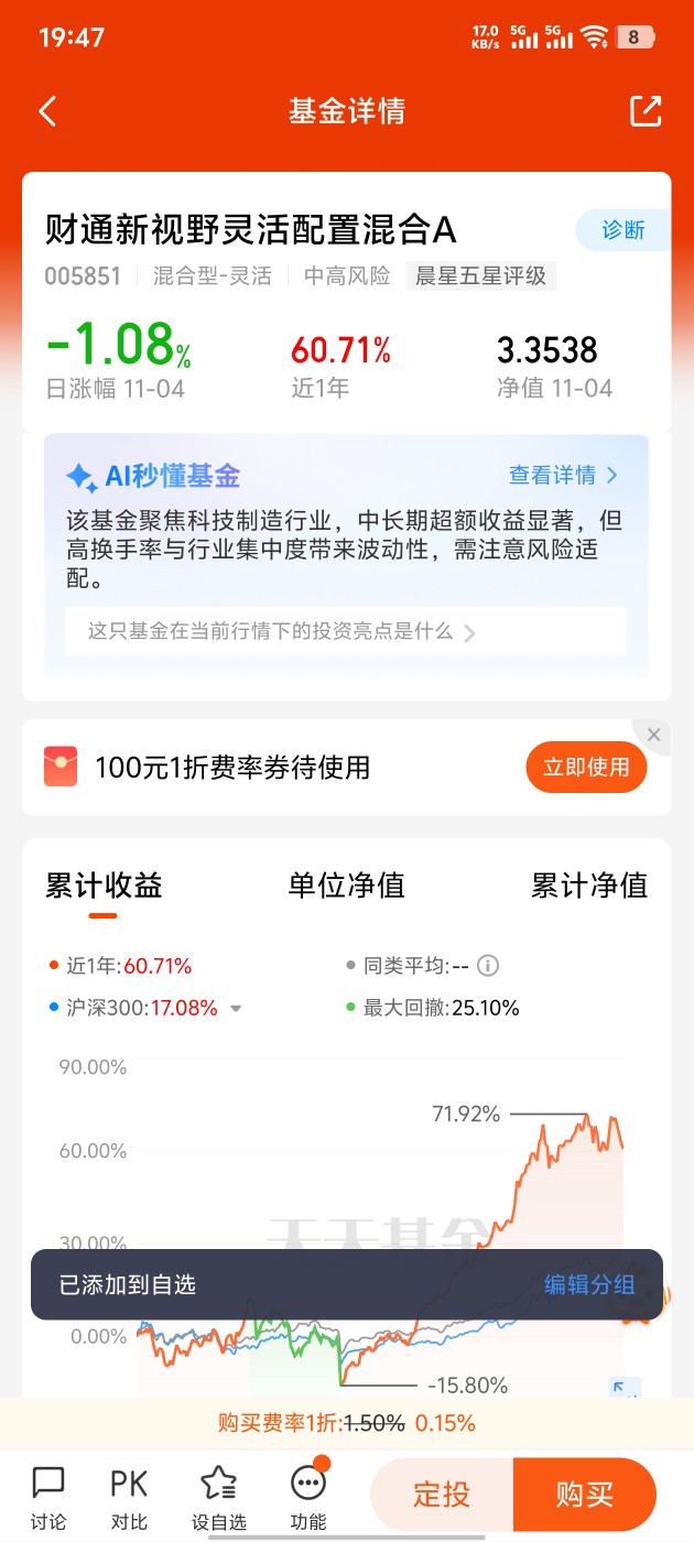 我会坚定看好$财通新视野灵活配置混合C$ 坚定支持@财通基金