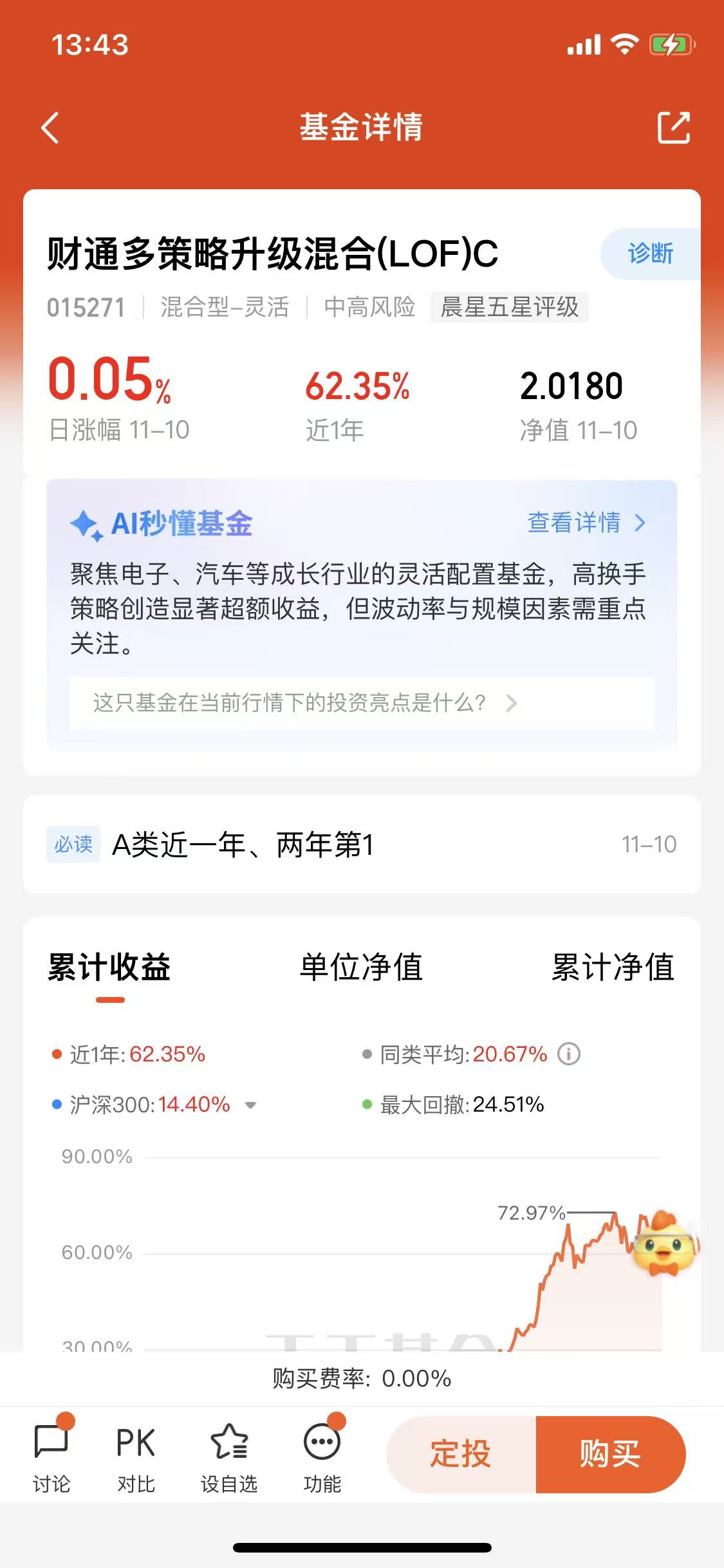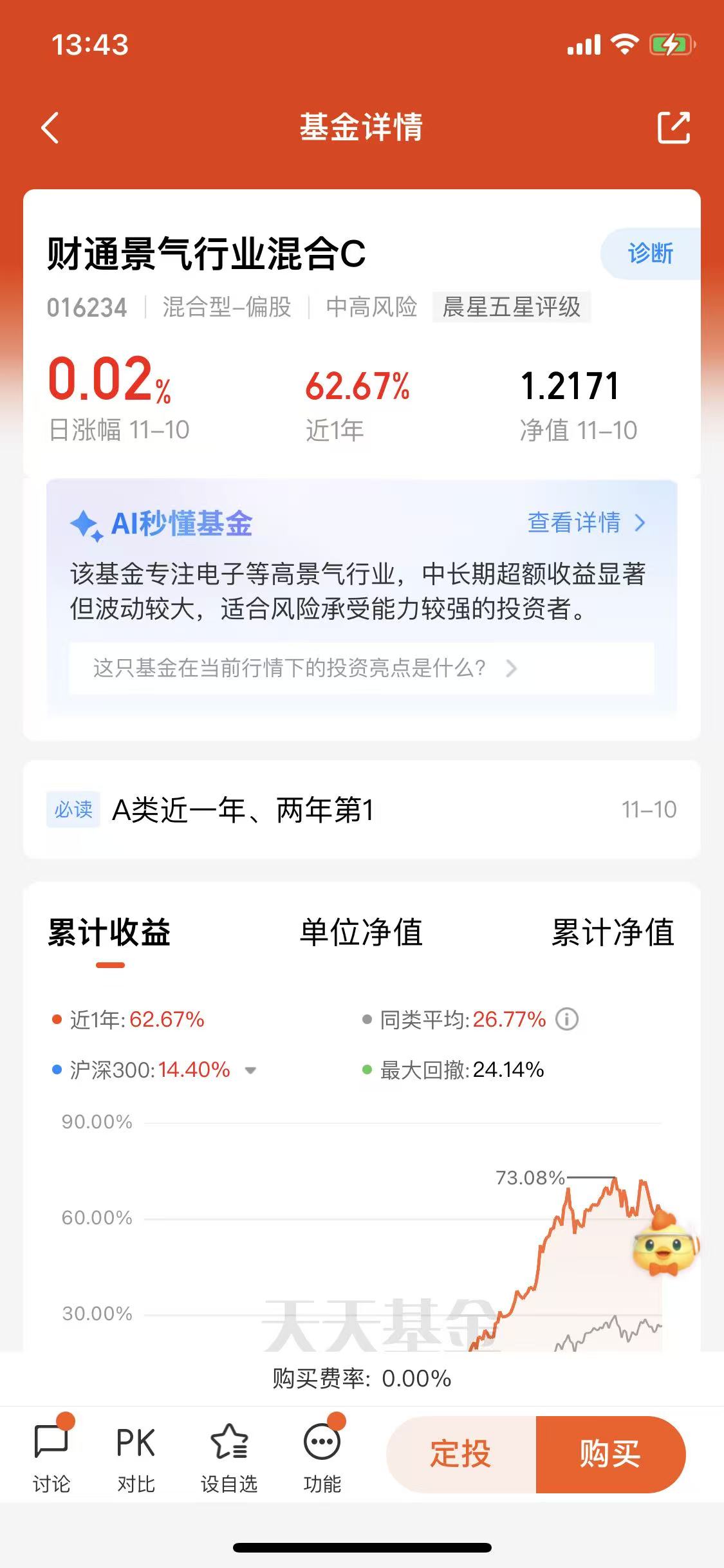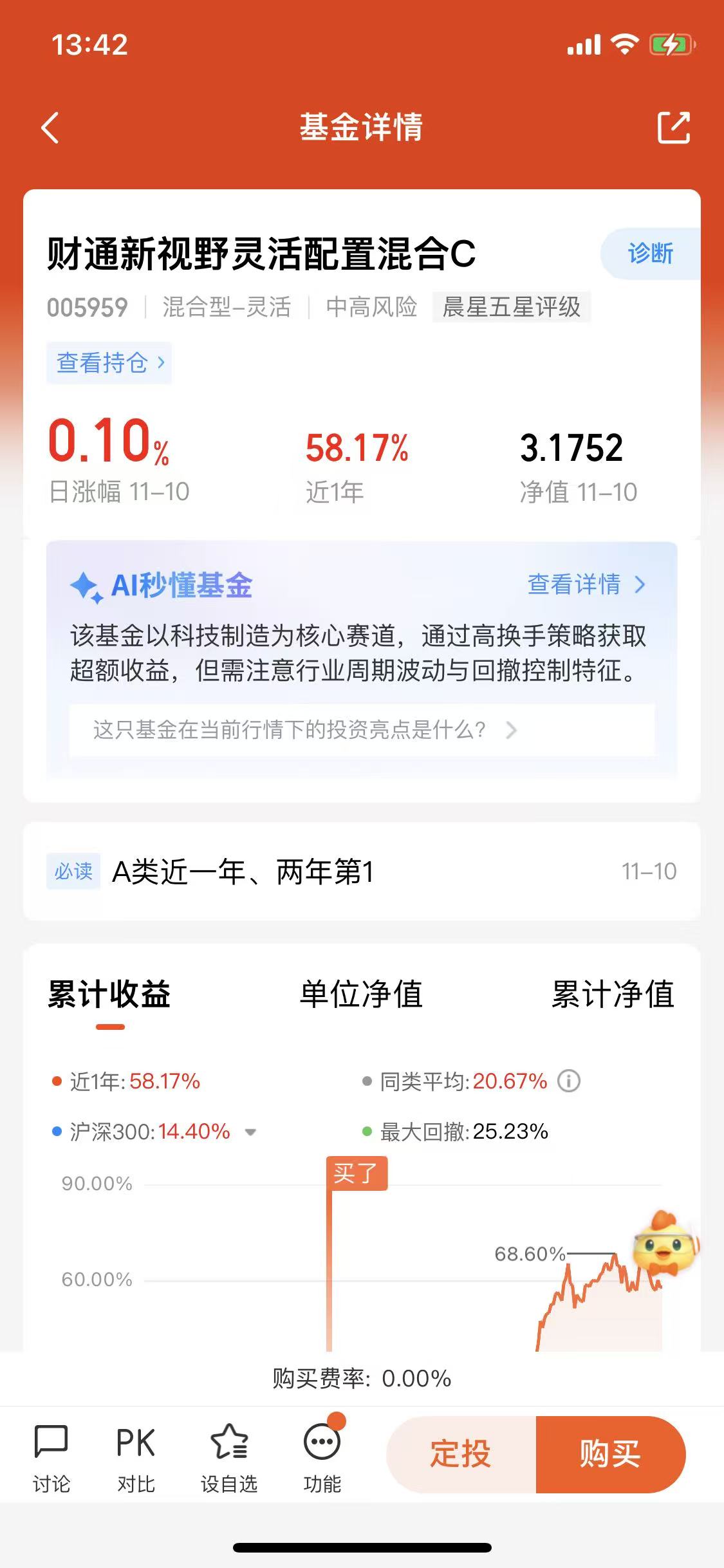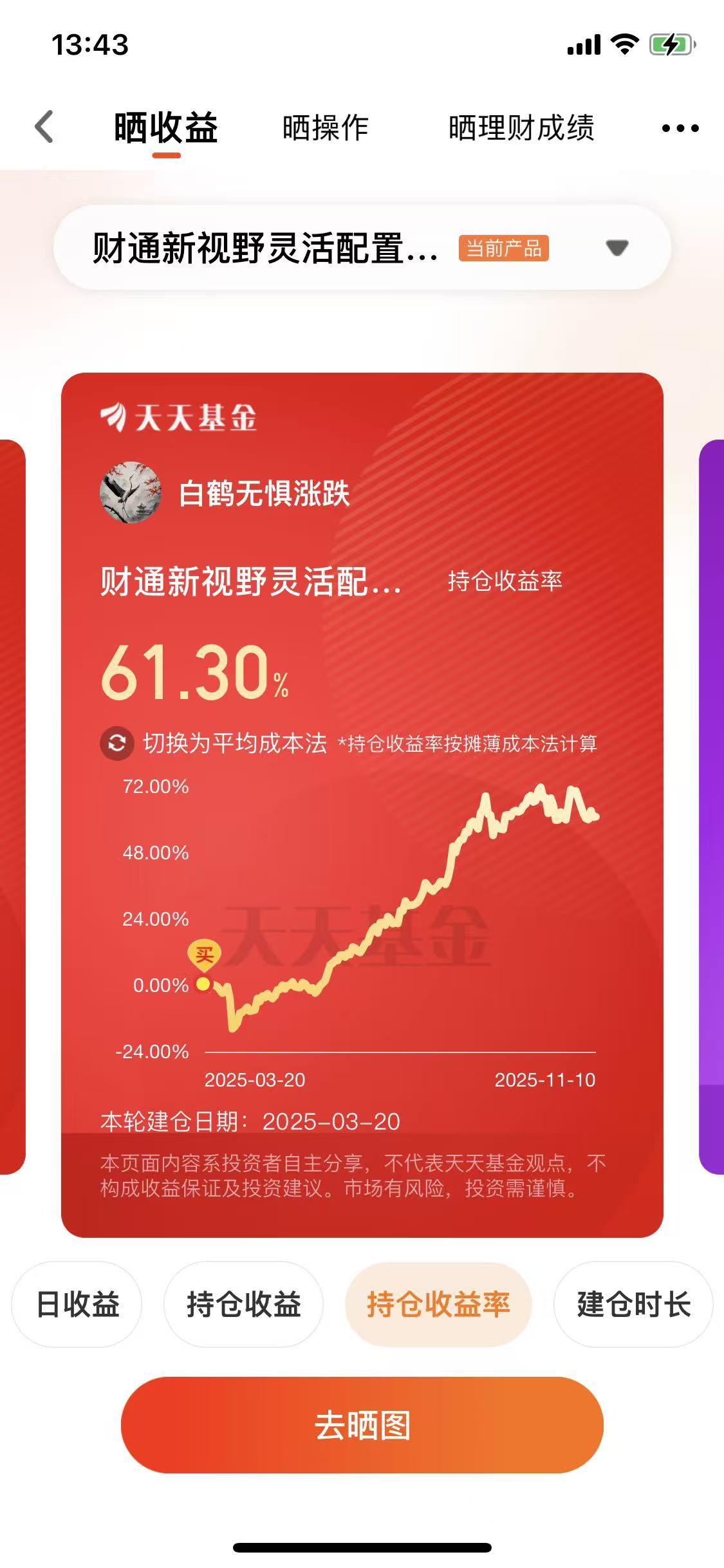 说到底,普通人找风险与收益的平衡点,不用搞复杂的公式和模型,选对一只 “懂平衡、够稳健、有潜力” 的基金就够了。财通新视野灵活配置混合 C(005959)用扎实的业绩、优秀的基金经理、合理的持仓布局和友好的费率等优势,完美诠释了什么是 “风险可控下的收益最大化”,在未来,我也会继续坚定持有,并根据市场的变化适时加仓。@财通基金