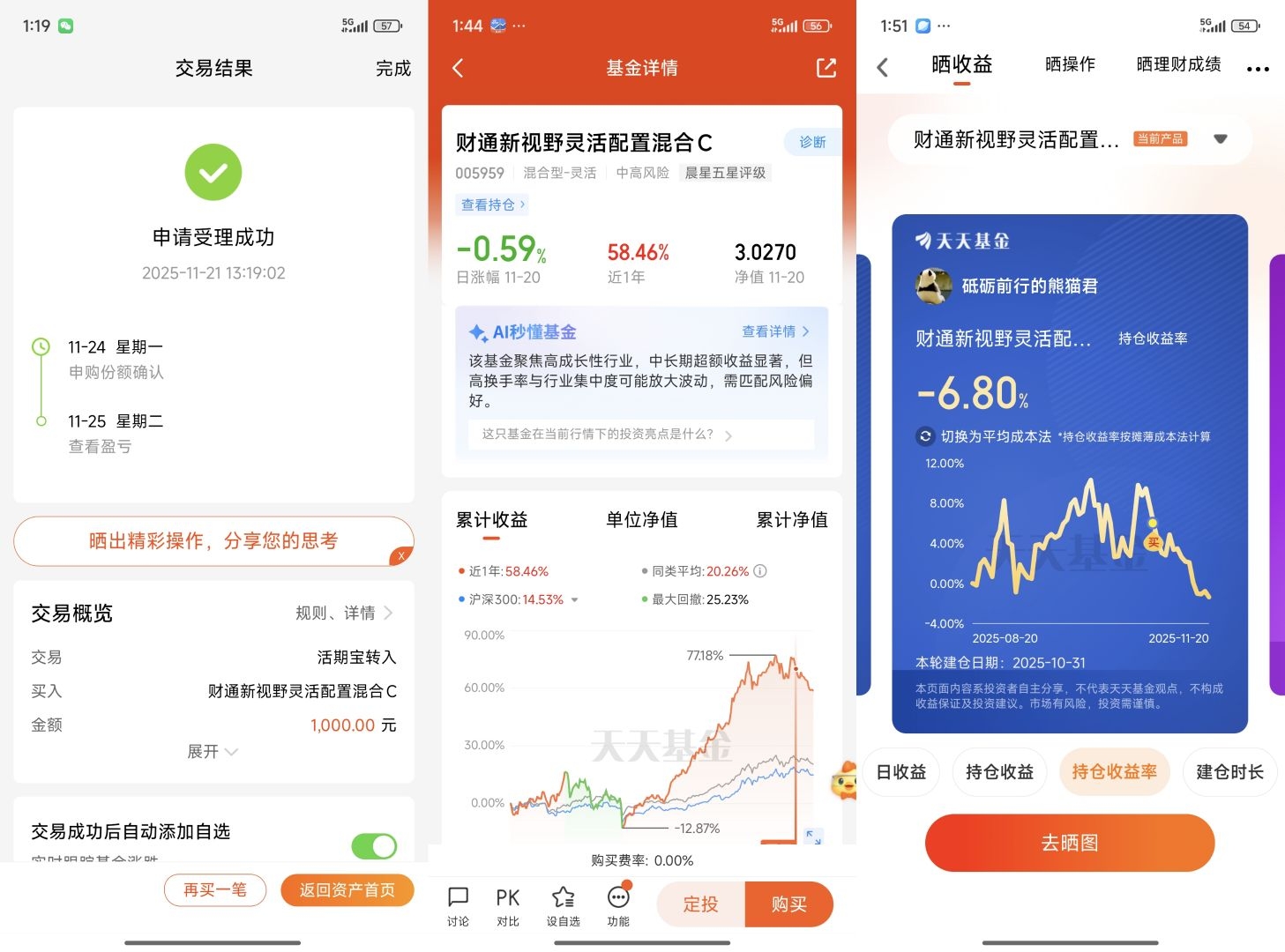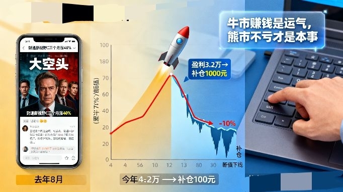 今年4月,这只基金净值如火箭般蹿升,到10月高点时累计涨幅达70%。我盯着账户里“盈利3.2万”的数字,仿佛看到房贷提前还清的曙光,果断加仓。然而,市场像一记耳光——10月高点买入后,净值直线下跌7%,今天又跌了3%。补仓1000元的瞬间,我突然意识到:原来“牛市赚钱是运气,熊市不亏才是本事”。