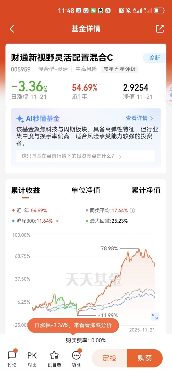 长期视角建立:以$财通新视野灵活配置混合C$ $财通新视野灵活配置混合A$ 为例,该基金成立以来累计收益达210.38%,但若在2022年低谷期离场,便会错失后续71.88%的三年收益。