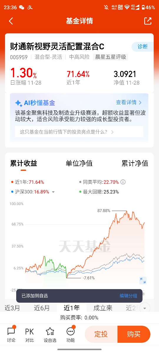 投资就像走平衡木,一边是想赚更多收益的期待,一边是怕亏本金的顾虑,要是偏向哪一头都容易摔下来。而找风险与收益的平衡点,核心不是赌市场涨跌,而是选对适配的工具、定好合理的策略,让收益能拿得住,风险也扛得住。财通新视野灵活配置混合C作为一只聚焦消费与科技赛道的基金,它的运作逻辑和实际表现,刚好能帮我们看清怎么在波动市场里找到这个平衡支点。