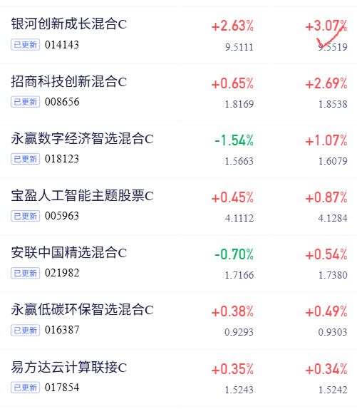 $银河创新成长混合C(OTCFUND|014143)$涨幅3.07%