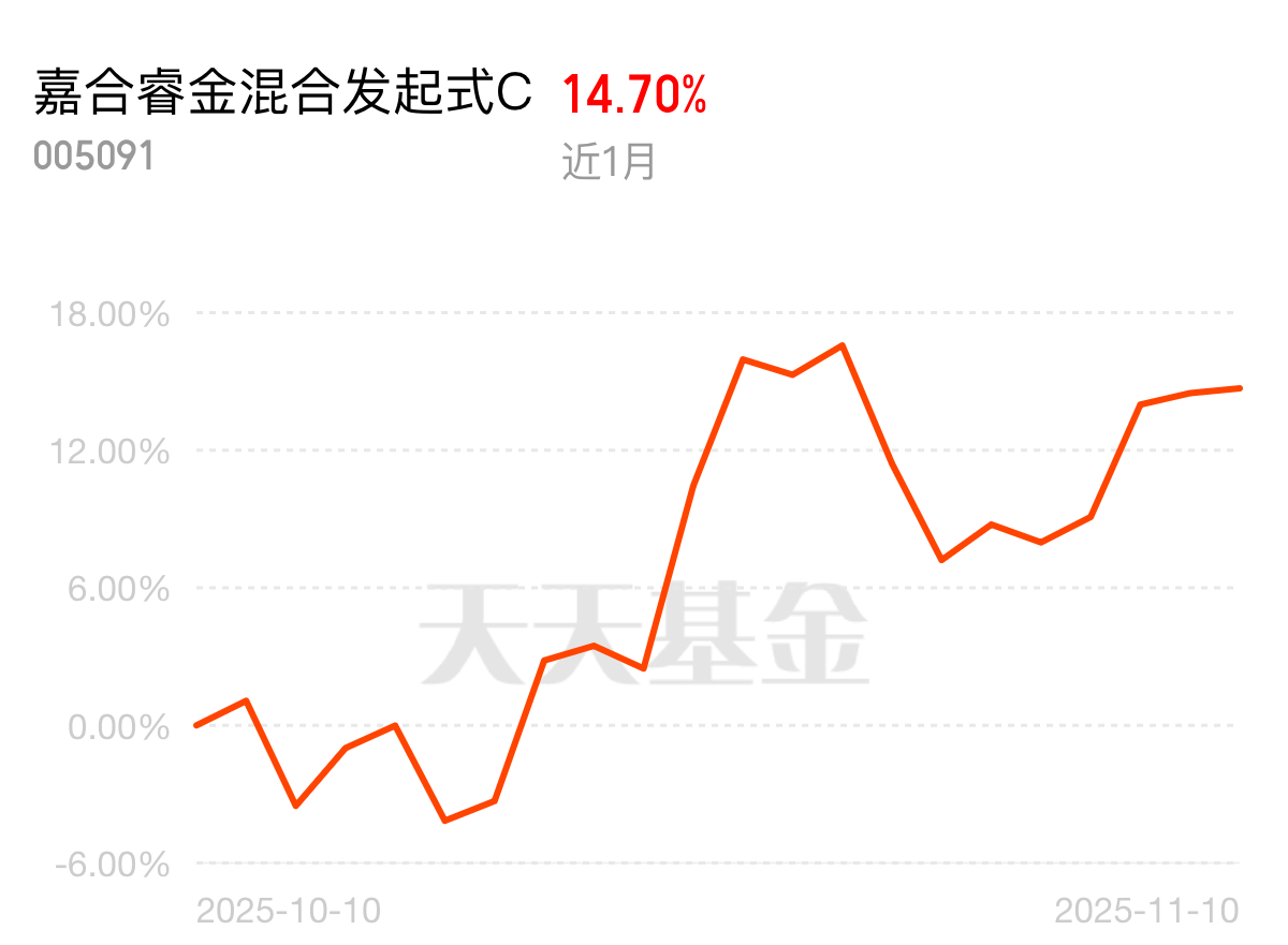 科技板块近期热度持续走高,CPO和存储芯片的景气度不断提升,成为资金追捧的对象。嘉合睿金混合C精准切入这两大热门赛道,近1个月上涨14.70%,业绩亮眼,想参与的别错过。