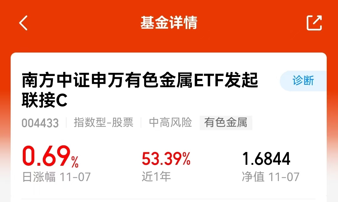 今天$南方中证申万有色金属ETF发起联接C$(004433)净值又创新高。近一年涨幅超过百分之六十,长期表现确实稳健。指数每半年调整一次成分股,及时反映行业变化。对于投资者来说,这种工具省去了研究个股的麻烦,当前环境下,这种与经济周期相关的行业指数基金,或许是不错的选择。行情来了,就要选择这种能够全面把握行业机会的基金。#4000点 到底要不要止盈?#