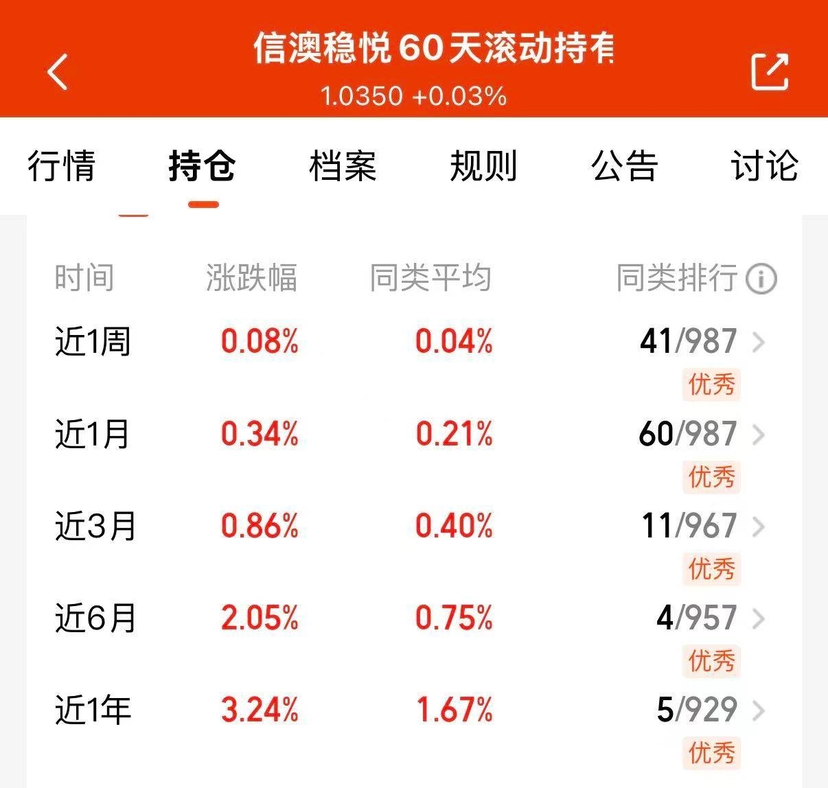身边朋友都在问的稳赚债基,必须是信澳稳悦60天滚动持有债券C。债市趋势明朗的当下