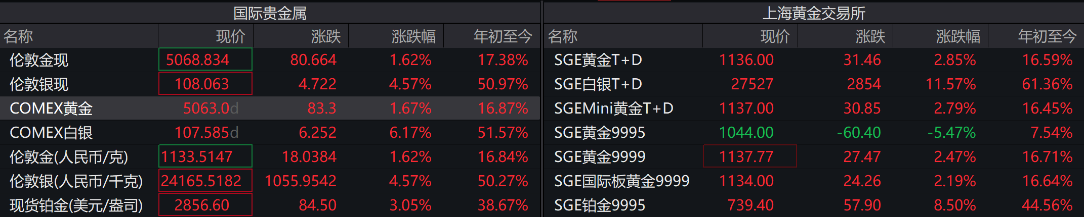 贵金属继续当秀儿