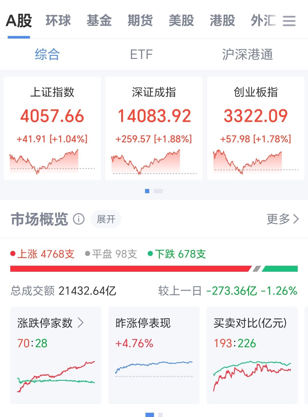 幸好没被洗走,昨日大幅调整,今日行情反弹还不错。早盘震荡、午后拉升、量能温和放大、,三大指数走势分化后逐步趋同,沪指早盘冲高回落半日收涨0.38%,午后不同程度拉升,尾盘资金进场迹象明显,沪指一度跌破4030点关键支撑后,拉升收复支撑位;创业板指午后延续强势,涨幅再度扩大。
