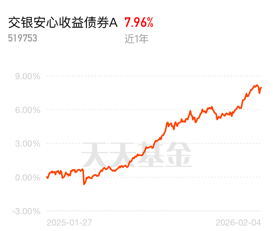 发现一个宝藏基!$交银安心收益债券A$ 近月收了171个蛋,表现亮眼。对比银行理财波动大、货币基金收益低,这个混债性价比高,债市利好支撑,股市估值低时轻仓参与。现在市场保守,适合求稳的我布局。收蛋的同时,避免大起大落,稳稳的幸福。