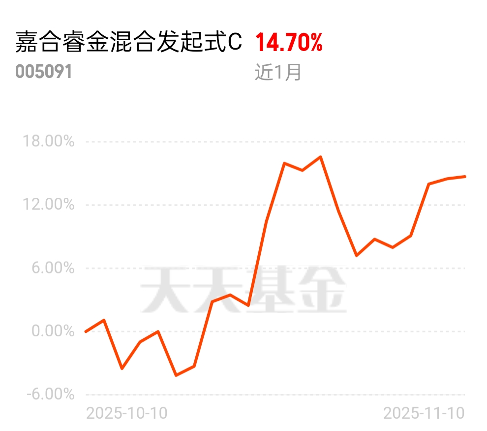 科技赛道近期表现强势,CPO和存储芯片板块涨势如虹,成为市场里的热门焦点。嘉合睿金混合C精准踩中这两个风口,近1个月上涨14.70%,收益看得见摸得着,想赚钱的别犹豫。