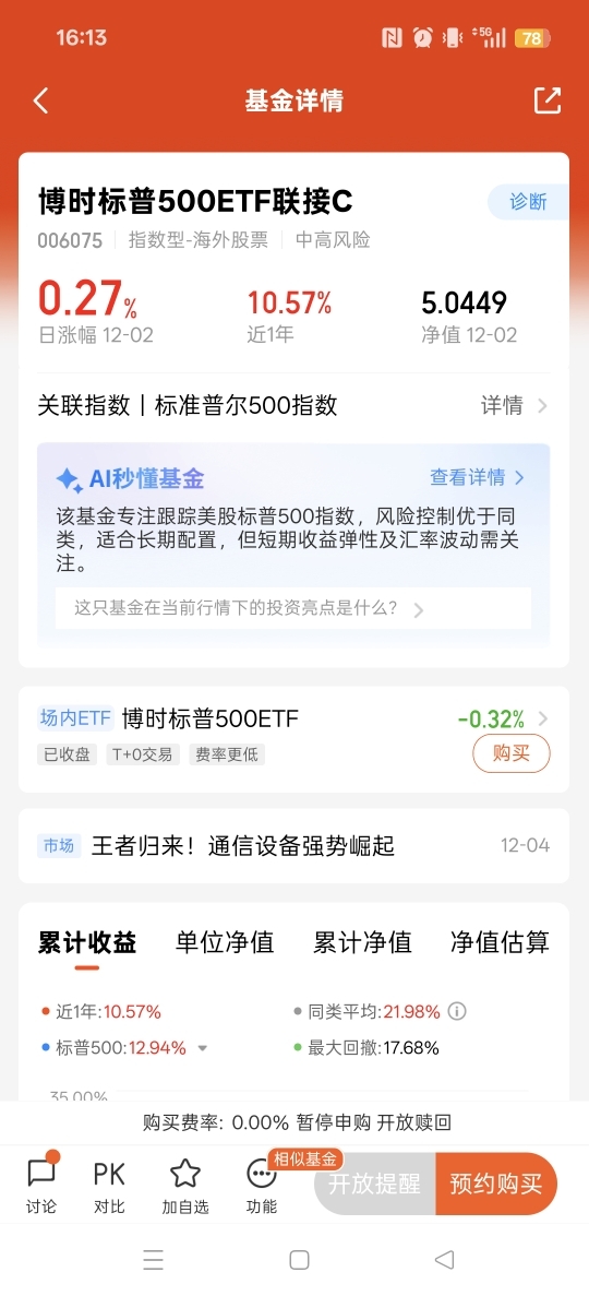 覆盖美股各行各业,跨市场分散风险,闲钱放里面挺安心