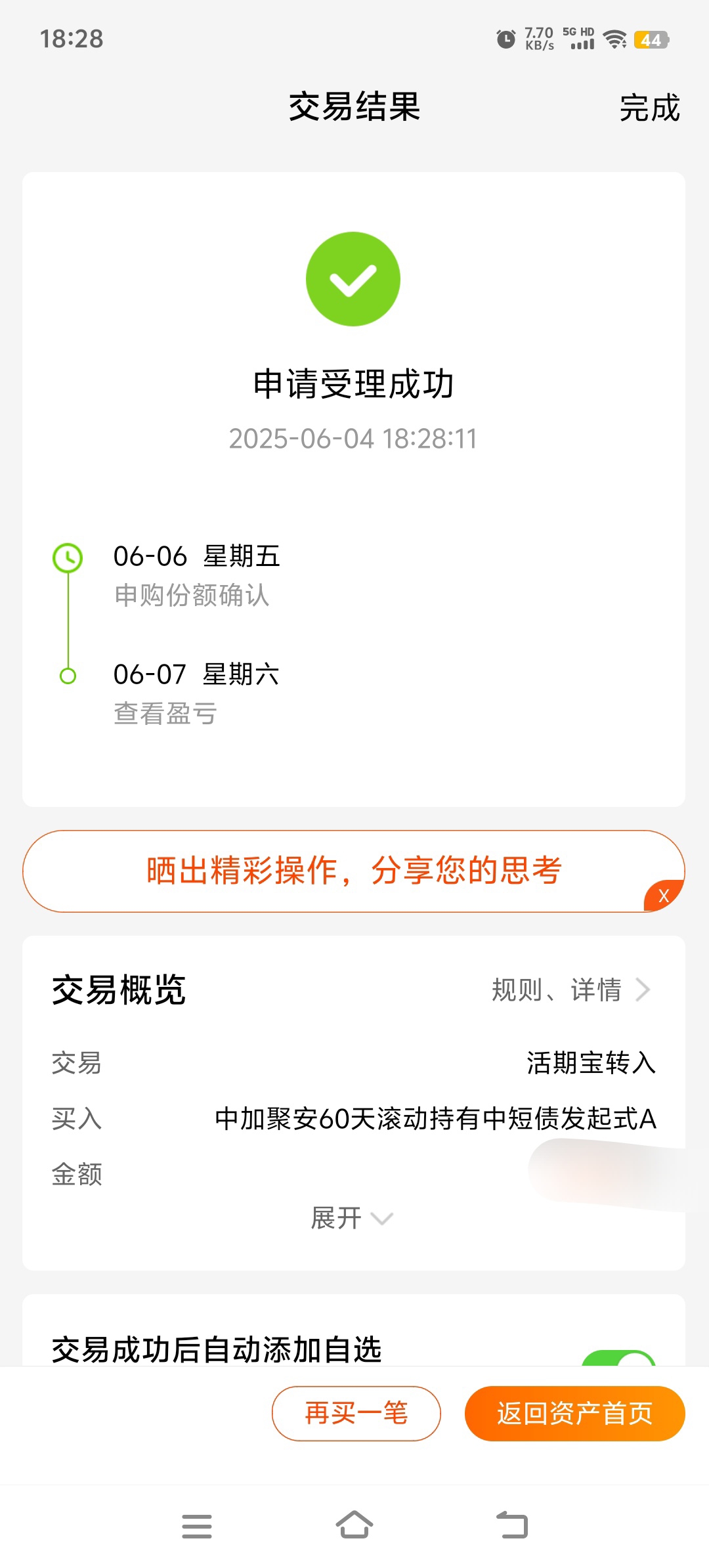 稳健投资中短债还是挺合适的,走势稳,也有一定的流动性。中加聚安A半年收了快200个蛋了,同类前2%,收益强,费率还低$中加聚安60天滚动持有中短债发起式A$