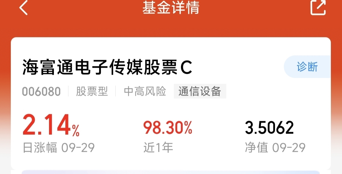 看来看去还是科技比较香,今天的大科技又是尾盘发力,集体突破,$海富通电子传媒股票C$ 今天上涨了2.14%,近一年上涨了98.3%。主动的科技基金,长期表现都是优秀。大幅跑运赢的同类平均业绩。期待明天继续创新高。