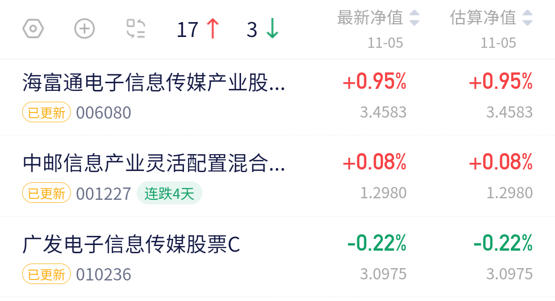$海富通电子传媒股票C(OTCFUND|006080)$上涨0.95%