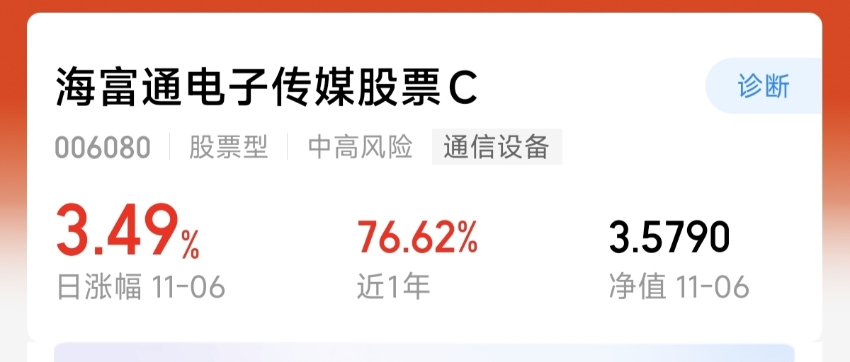 今天的人工智能云计算再度迎来爆发。$海富通电子传媒股票C$ 这次主动的科技基金,涨幅达到了3.49%。近一年涨幅76.62%。长期的能力强。基金经理把握行情的能力优秀。近年来一直在创新高。我看好未来的突破表现。