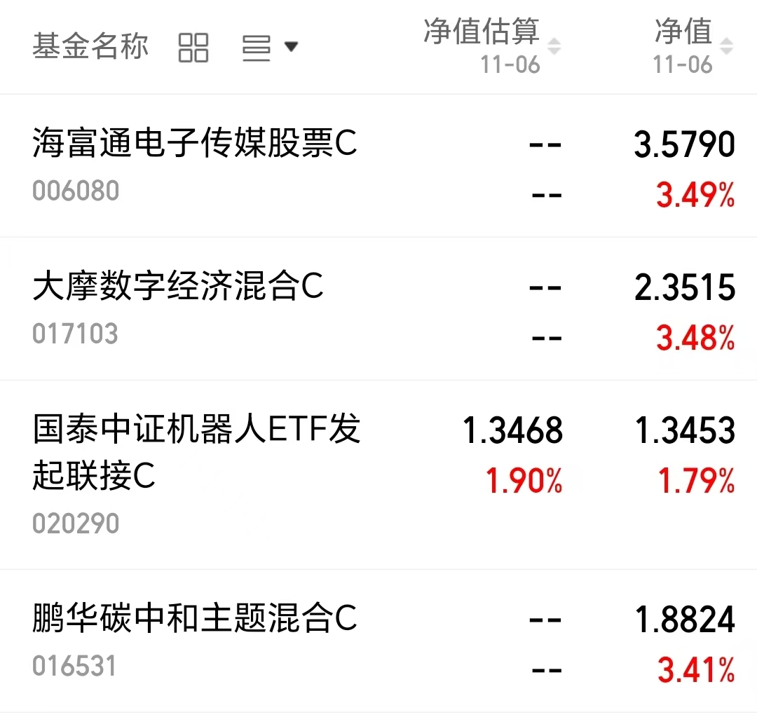 今日A股市场氛围回暖,板块联动性增强,整体呈现震荡上行态势,市场情绪逐步修复。科技板块表现亮眼,成为市场核心发力点,CPO、AI应用、数字经济和机器人等方向表现不错,带动市场走强。一起看看今晚净值更新表现:
