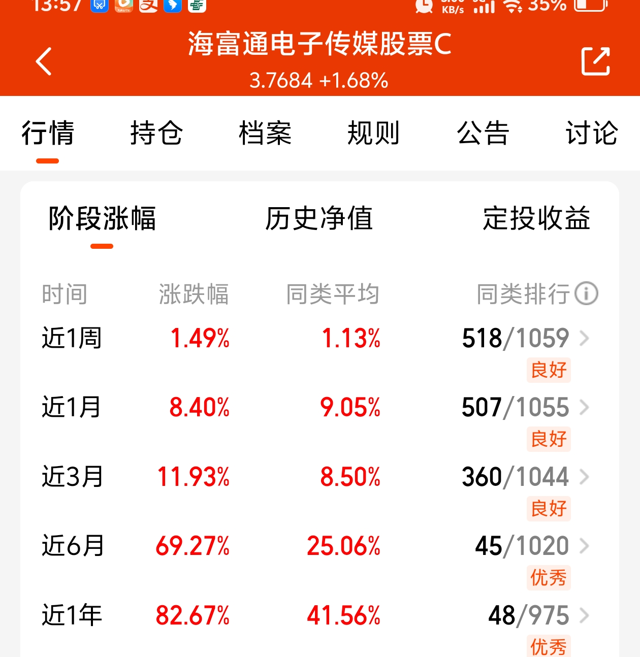 海富通电子传媒股票C(006080),阶段业绩还是不错的,近六个月涨幅69.27%,其主要聚焦AI应用、TMT方向(科技、媒体、通讯等),配置方面集中度较高,其持仓标的成长性好,弹性大。AI产业链是未来大趋势,提前布局,静待花开