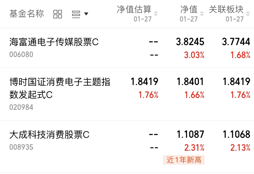 市场风格正在慢慢转变,午后就特别明显了。权重股的拉升力度减弱,甚至有些开始回落,而盘面主角换科技题材,资金明显往这个方向在靠拢$海富通电子传媒股票C(OTCFUND|006080)$上涨3.03%,$博时国证消费电子主题指数发起式C(OTCFUND|020984)$上涨1.66%,$大成科技消费股票C(OTCFUND|008935)$上涨2.31%。
