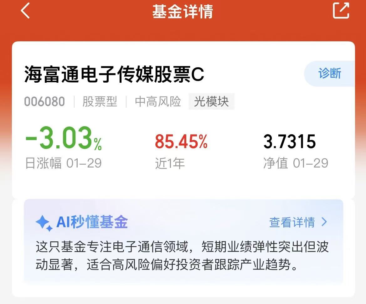 $海富通电子传媒股票C(OTCFUND|006080)$聚焦电子信息与传媒核心赛道,重仓涵盖新易盛、中际旭创两大光模块龙头(合计持仓超19%),同步布局沪电股份、生益科技等PCB核心标的,以及海光信息、寒武纪等AI算力核心企业,我今天也逢低布局起来。