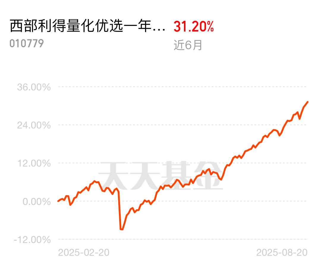 兄弟们$西部利得量化优选一年持有A$量化策略能灵活调整,近半年涨30多个点,既能