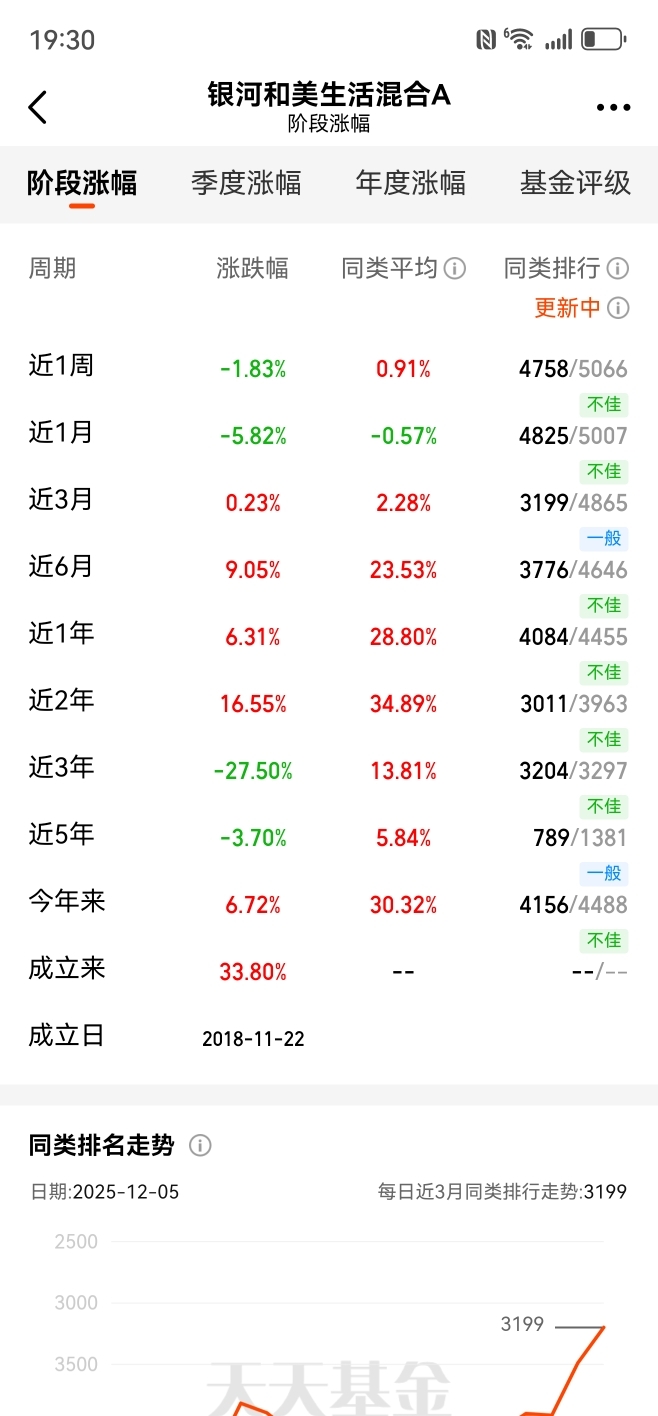 $银河和美生活混合A[006128]$ 一直守了好多年,切底失望了,这波市场行情严重跑输了大盘,长期投资这个收益率也是负的