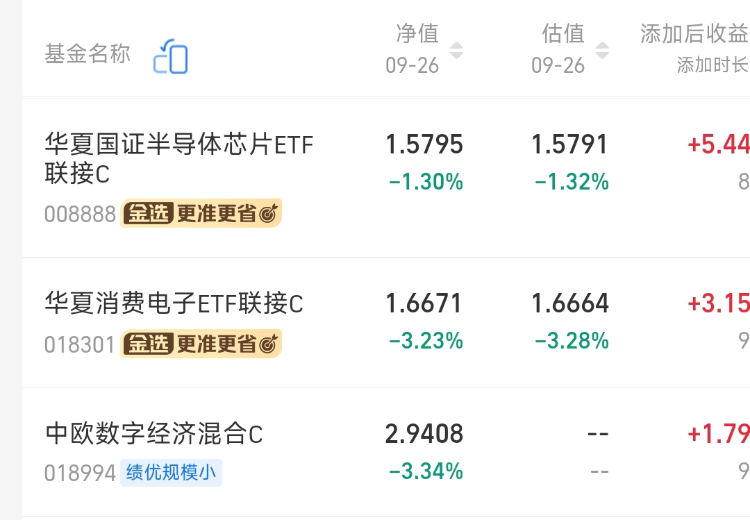 $华夏国证半导体芯片ETF联接C$ 跌1.30%