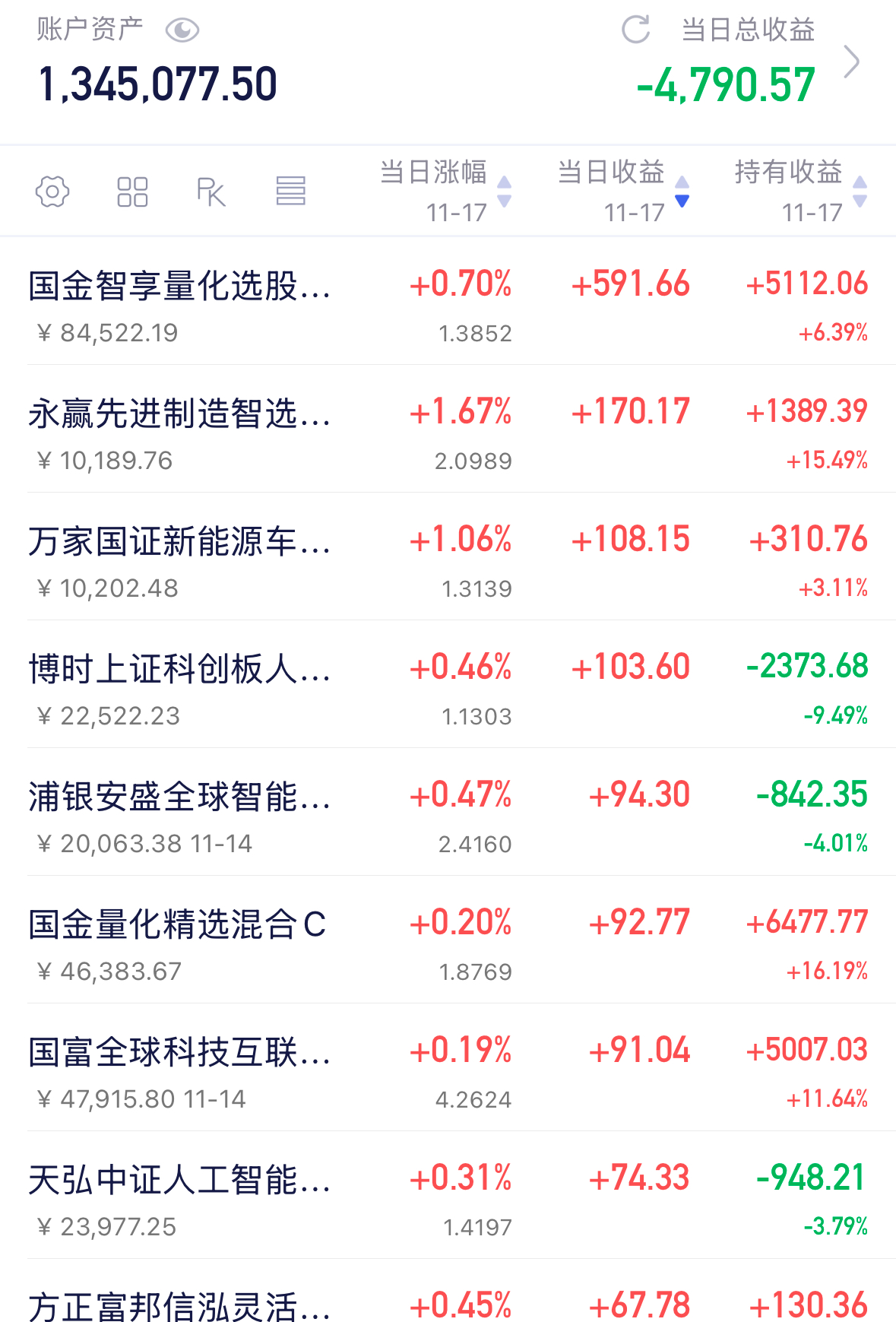 在震荡中创新高也是要点能力的,中信建投睿利C聚焦小盘价值风格,采用多元策略通过量化辅助灵活出击,不仅可以及时抓到市场超额收益机会同时也能在市场回调时严控回撤躲避大跌风险,上周五市场巨震这只再次展现出较好的韧性,只跌0.54%。底仓配置我投这个持有体验确实好,咩咩分批布局已买1万,目前收益率也还不错,今天我再加2000元。