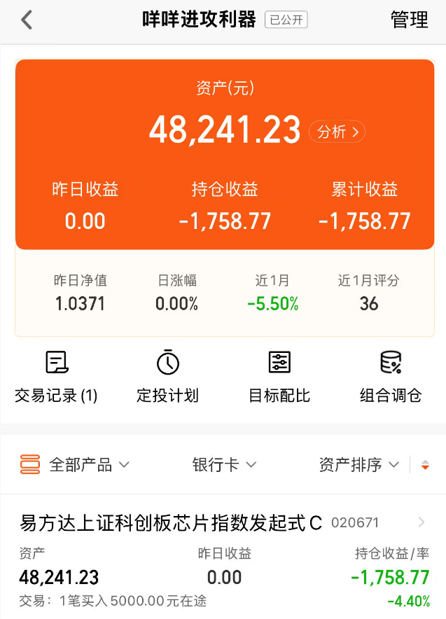 基于我自己的认知,我今天又加了芯片。再跌再加!科创芯片指数冲高回落,我今天又加了一份 $易方达上证科创板芯片指数发起式C(OTCFUND|020671)$