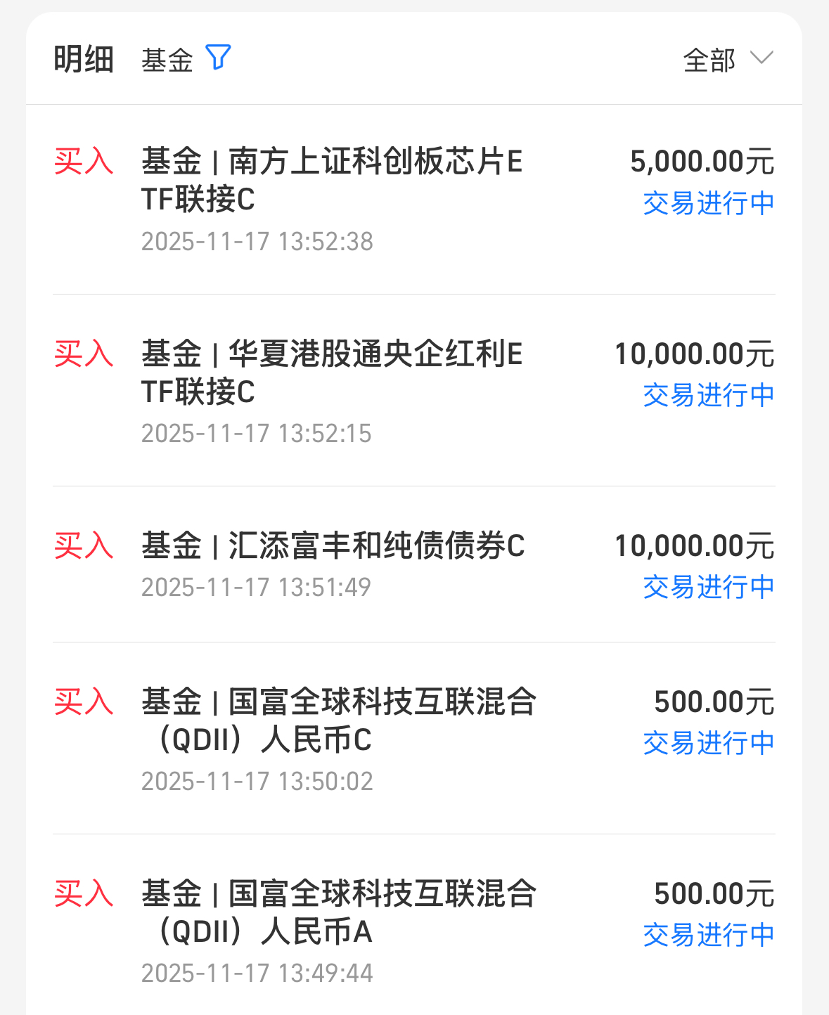最近老美股市也不是那么太平,老纳周K两连阴。不过美股的回调我倒是从来没担心过,从过往近10年的表现看,美股回调机会多过风险,下跌也往往是买入机会。消息上,股神巴菲特出手,开始加谷歌!这个消息直接打脸AI泡沫论,总所周知,巴菲特向来对科技股比较谨慎,这次出手谷歌或是一个积极信号,我今天也跟随巴菲特加了一份。国富全球科技前十权重中,谷歌位列第2~虽然产品单日上限500,但A类+C类合起来就是1000,所以我分别出手加了500。