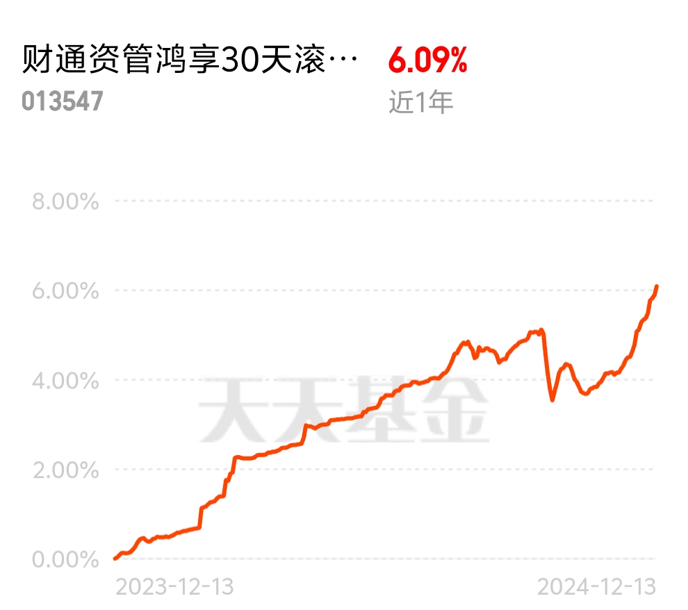 $财通资管鸿享30天滚动中短债C$ 上周五他表现的优秀呢收获了19个大蛋就是非常的不错,近一年收益也达到了6个点以上。同类中是比较亮眼的。