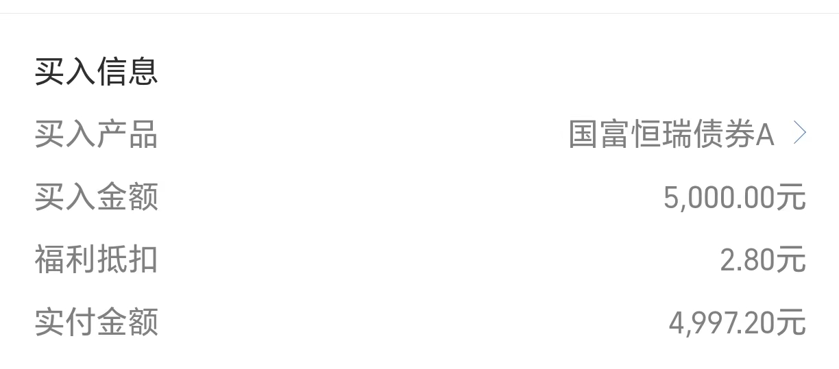 $国富恒瑞债券A(OTCFUND|002361)$+5000,今天个人继续补一笔防御型固收+,讨论区还领了一个满减包。这是一只固收+,采用股债搭配策略。现在权益市场经历之前的一波上涨,不少板块估值已经不便宜了,行情会有反复性。而且不是普涨行情,板块轮动快,只想进攻可不行,防御也得跟上。恒瑞持仓以利率债占63.41%打底,另外搭配了18.15%的可转债和16.15%的股票仓位,主要是金融、消费和基建地产这些高股息资产,偏向政策重点倾斜的行业,整体稳中有升。业绩来看,波动又小于多数同类固收+,低波体验感较好。今天,我决定继续加一笔。