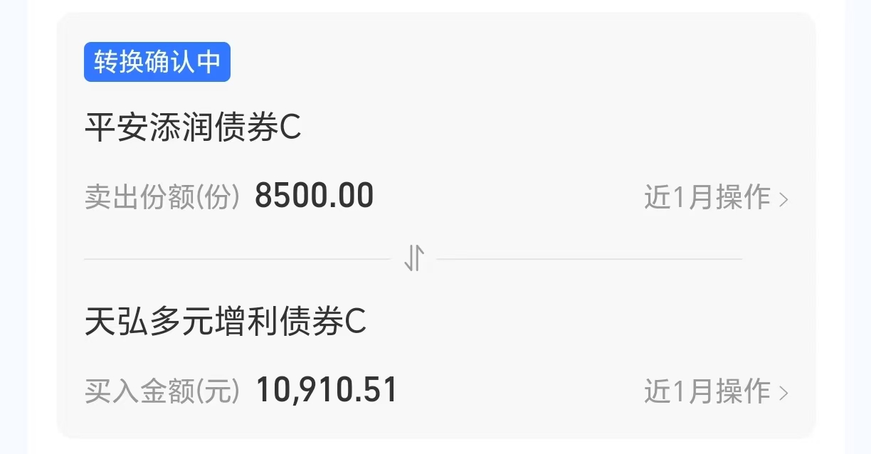 $天弘月月宝30天持有期债券C(OTCFUND|022306)$+20000,目前市场存在反复性,我决定继续稳健布局。这只基金表现比较平稳,持仓都是短久期债券 ,流动性好,主要是信用债,有相对稳定的票息收益。市场波动大的时候,它的回撤控制得也不错。看历史走势,整体是稳步向上的。就算市场偶尔出现回调,幅度也就在0-2个蛋之间,跌后修复速度比较快。长期收益比同类信用短债、货币基金有优势。30天持有期不用频繁操作,符合我年底防守的思路,波动在可接受的范围。讨论区6楼还有满减包,性价比还是不错的。