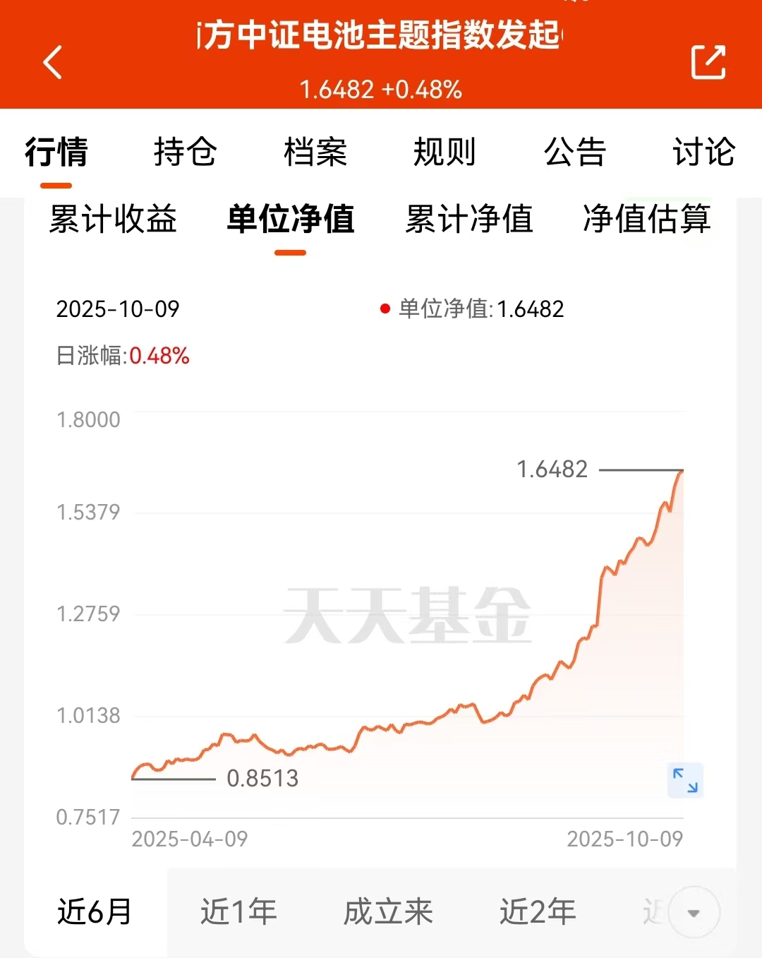 别看现在电池板块热热闹闹的,其实背后是实打实的需求在撑着。低空经济、机器人这些新领域对电池要求极高,尤其是低温性能,固态电池在零下40度内阻只增10%,简直是为这些场景量身定做的。$南方中证电池主题指数发起A$(018926)近三个月66%、近六个月93%的涨幅,说明它踩准了这波需求扩张。而且这基持仓集中在电力设备领域,占比四成以上,都是直接受益的环节。现在进去不算晚,趋势才刚起来。#10月基金投资策略#