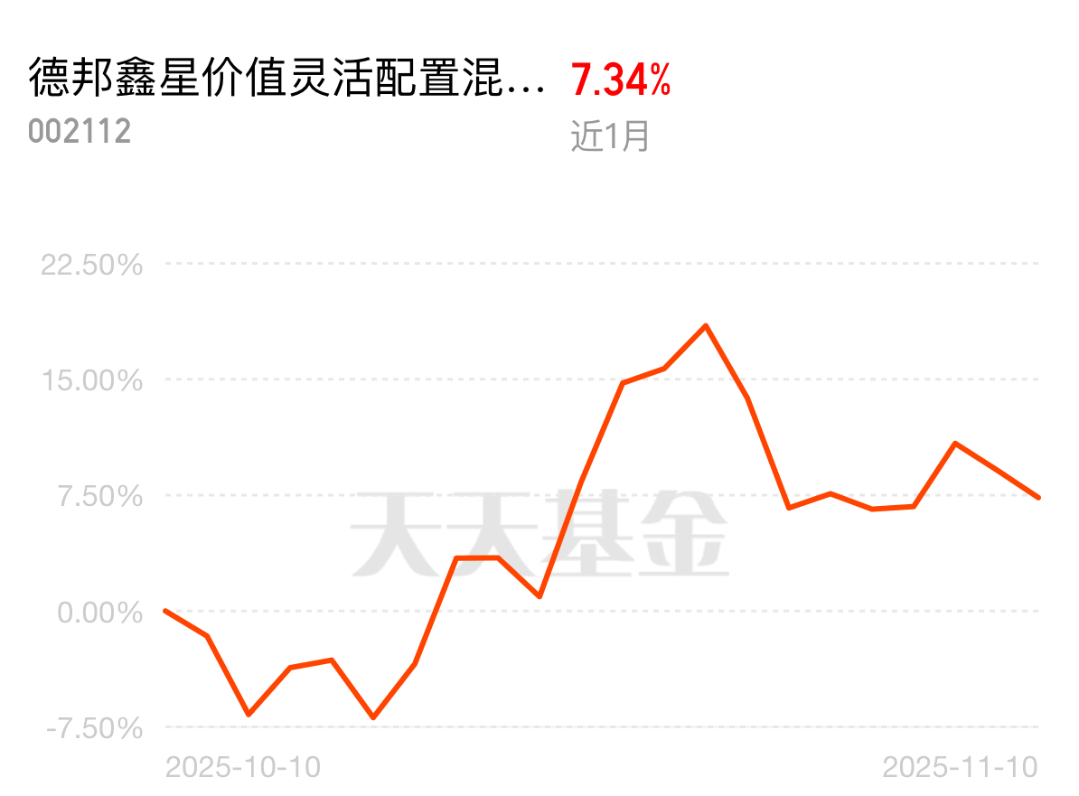 CPO板块调整到位开始反弹,资金又重新回流,赚钱机会来了。德邦鑫星价值灵活配置混合C近1个月涨7.34%,持仓紧扣CPO主线,趁现在加仓,跟着基金一起吃一波上涨红利。