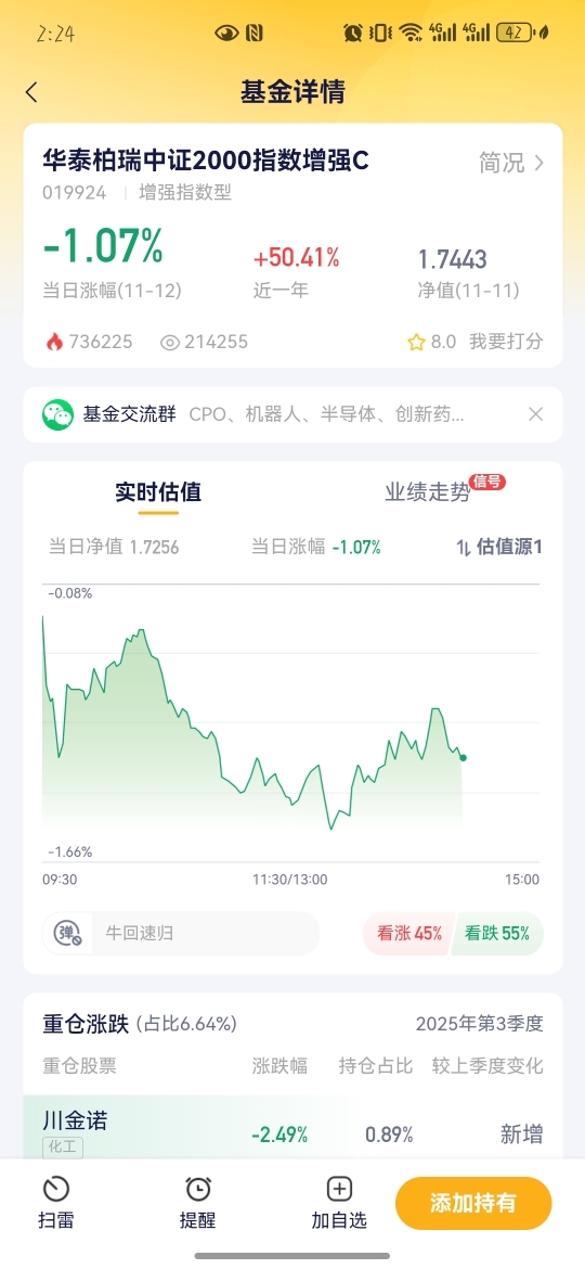 今儿跟老股友聊天,他说:“科技股涨累了,现在都不知道买啥。”其实市场就是这样,主线熄火后,资金总得找新出口,小微盘股最近活跃度明显起来了。但咱散户盯着几百只小票选,精力够呛还容易焦虑。这时候华泰柏瑞的中证2000指数增强C就派上用场了——它覆盖的是全市场市值偏小的票,天然弹性足;加上量化策略做增强,超额收益一直在线,近一年同类(A类)排第一。现在行情没主心骨,配点这种小盘增强基,相当于给账户加个“灵活探测器”,跟着资金找机会。