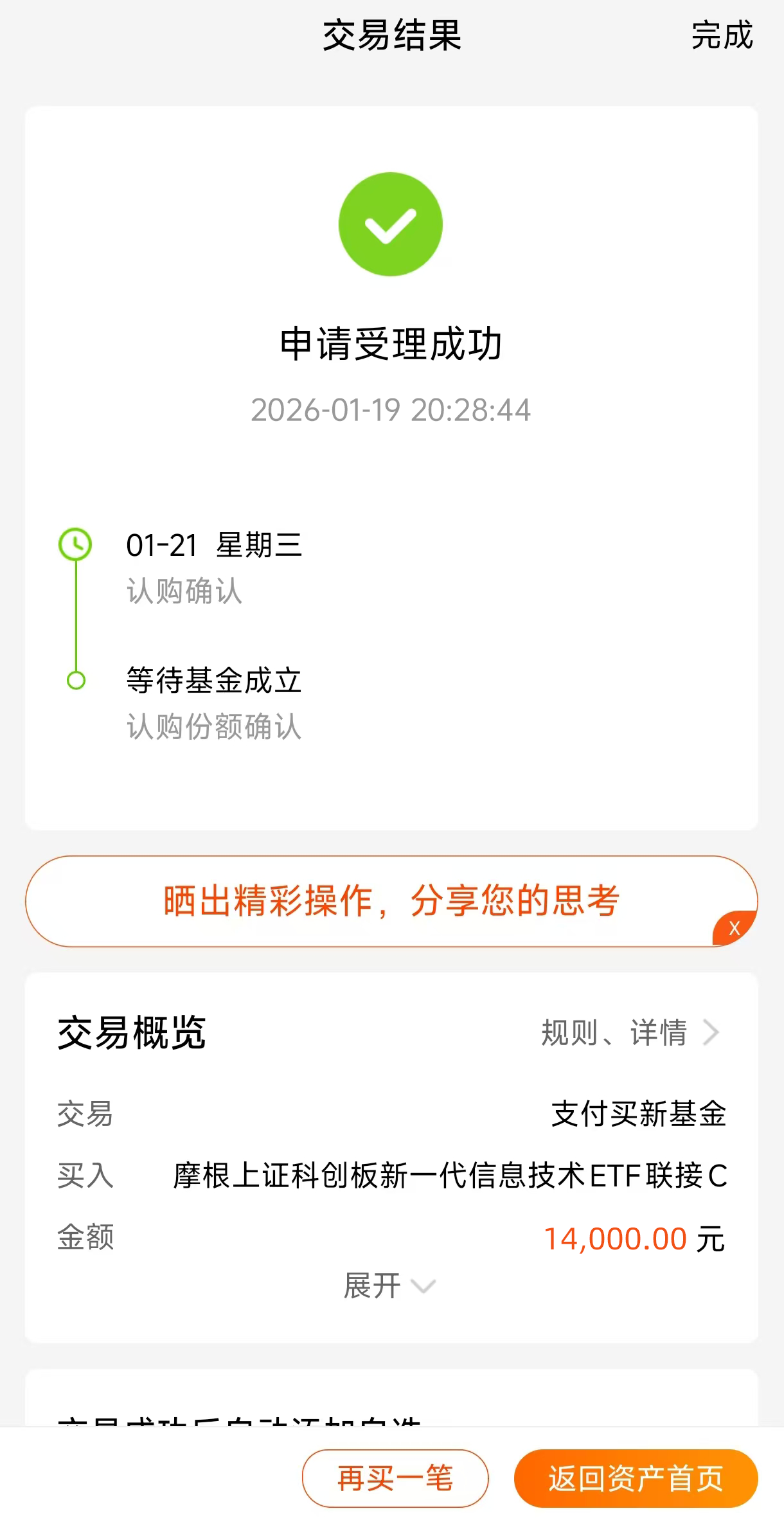 今天市场继续晃荡,沪指表现还行靠的是权重股,但创业板指明显跟不上,冲一下就回落,分歧不小。两市成交额2.71万亿,比前一天少了三千多亿,交投清淡了。钱在几个板块里来回窜,电网设备、贵金属、旅游酒店是今天的热点,基础化工、石油石化这些也跟着动,说明资金在找一些相对稳妥或者有涨价预期的去处。市场调了几天后,今天看起来跌不动了,但成交量没放大,说明观望的人还多,后续得看量价配合。不过,科创信息指数上周逆市涨了3.6%,走出了独立行情。这说明什么?说明在整体市场不明朗的时候,结构性机会已经冒头了。它的逻辑挺硬:政策支持是长期的,估值经过消化有吸引力,产业趋势又明确。想搭这趟车,看看$摩根上证科创板新一代信息技术ETF联接C$(025316)。它跟踪的指数一周涨3.6%,表现好于科创综指2.6%的涨幅,说明在新一代信息技术这个更专业的赛道里,资金认可度更高。现在这种震荡市,就得配这种有自己节奏的。况且它是新发的,建仓的时候可以挑挑拣拣,在市场低位或者波动时分批买,建仓成本可能更划算。往后看,科技板块还是主线。AI已经不是概念了,正在大规模进入实际应用。另外,在一些被“卡脖子”的领域,国产替代的空间大得惊人。这个新基金在这个时候上市,给想参与这个长期趋势的投资者提供了一个现成的入口。#暖阳创作计划#