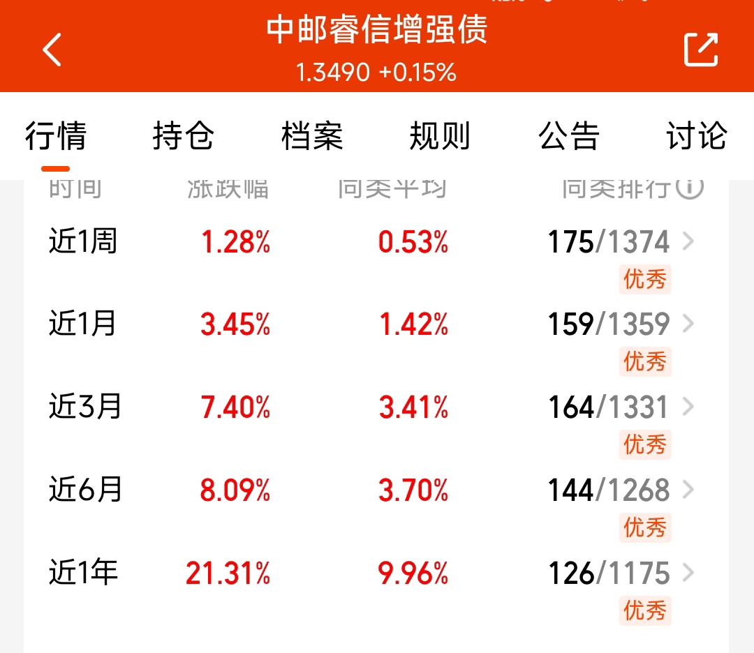 $中邮睿信增强债$ 的表现令人瞩目,近一天收了15个恐龙蛋,近一个月收了345蛋!而且回撤控制超绝,不用花费太多时间精力,收益就能慢慢变多。