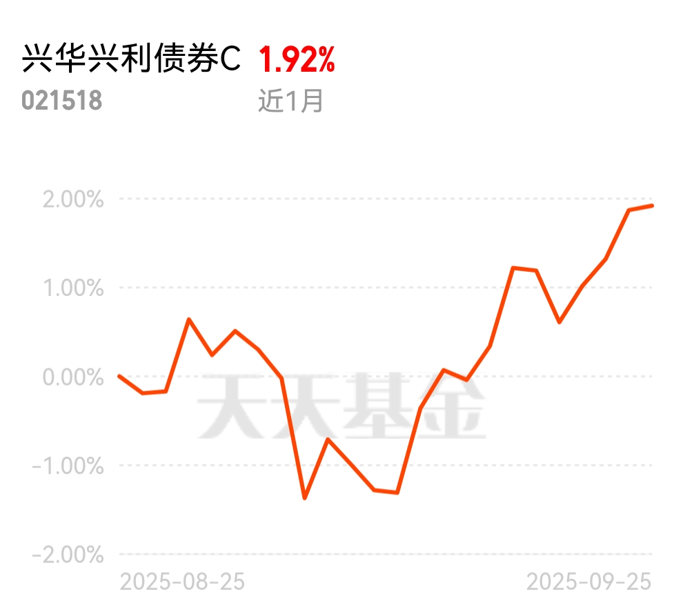 这段时间股强债弱,我和朋友聊基金,都觉得$兴华兴利债券C$$不错。连续4天逆势收