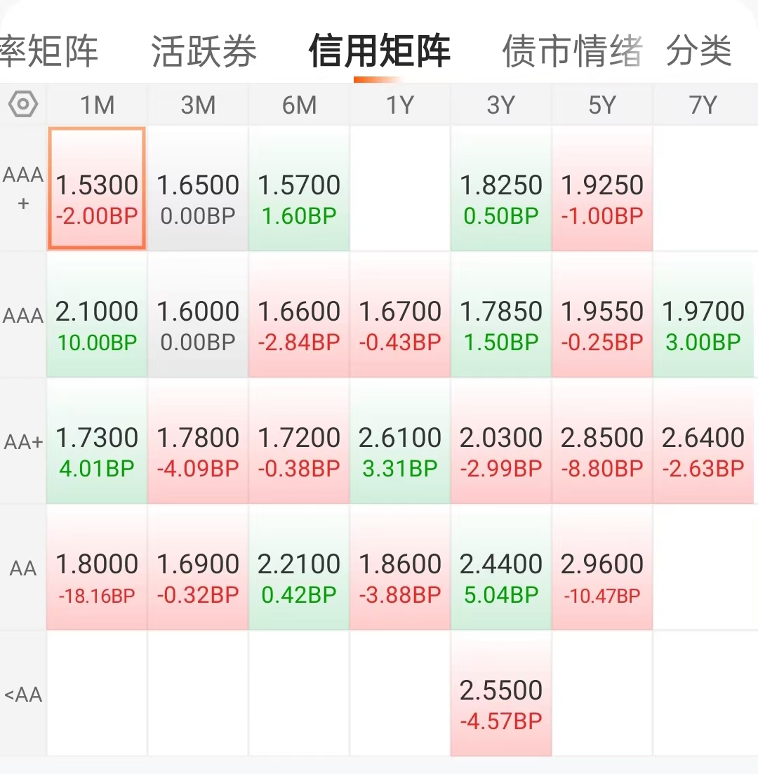 今天债市开盘有点蔫,一路往下走了走,整体还是晃悠着来的,利率债表现还是不太行,信用债这边呢,但还好,有一小部分还在往上冲