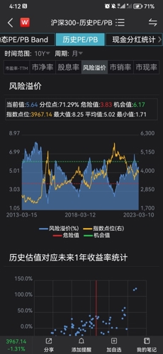 调仓动向:本组合按照沪深300指数风险溢价,最近十年的分位数调整权益和债券资产的组合配置。目前处于71%分位数,本组合降低了权益仓位,增加5%左右的债券资产。