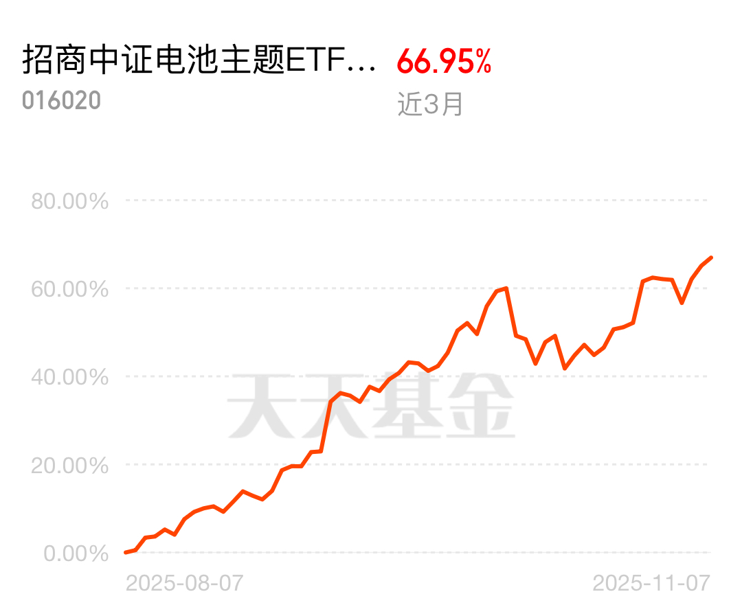 海外储能需求超预期,美国电网升级、欧洲新能源消纳带动出口增长,今日板块受提振上涨。招商中证电池主题ETF联接C紧跟全球趋势,近3个月收益66.95%,今日表现亮眼,全球化布局的赛道就是有潜力。