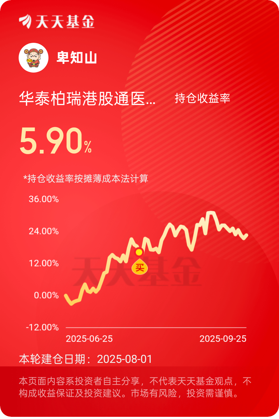 看到恒瑞11亿美金订单,创新药产业链要活了。华泰港股通医疗近三个月涨22.64%,这业绩,跌下来就是倒车接人。$华泰柏瑞港股通医疗精选混合发起式C$ #晒收益# #特朗普挥关税大棒:药品或遭高关税# #创业板指创阶段新高 致敬“924行情”# #“924行情”一周年 你赚了多少?#