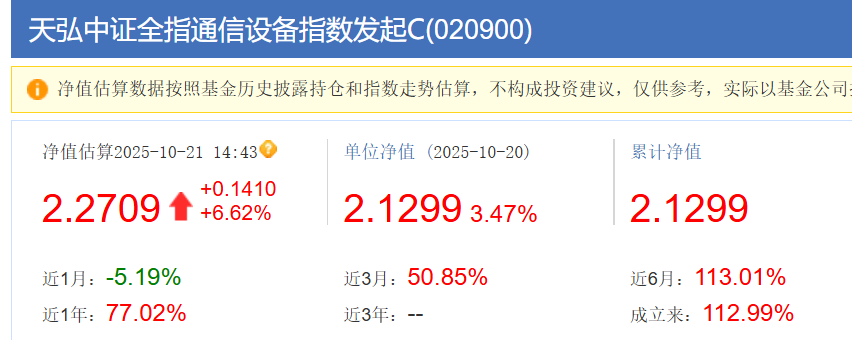 CPO爆发!$天弘中证全指通信设备指数发起C$ 盘中涨幅超过了6%,昨天逢反弹减仓的朋友傻眼了吧,留下朋友中午要好好的犒劳自己。毕竟连跌之后的第一个反弹日也是主力洗盘的好时机,昨天能忍住不卖的少之又少!昨天我还跟了一些,今天还不错,回调下来一些空间,短期我还是看涨的!继续拿稳了