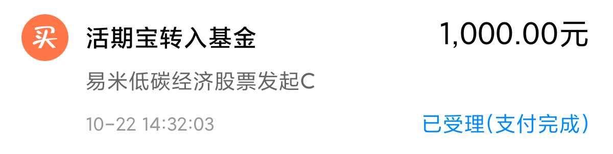 买进1000的 $易米低碳经济股票发起C(OTCFUND|017166)$