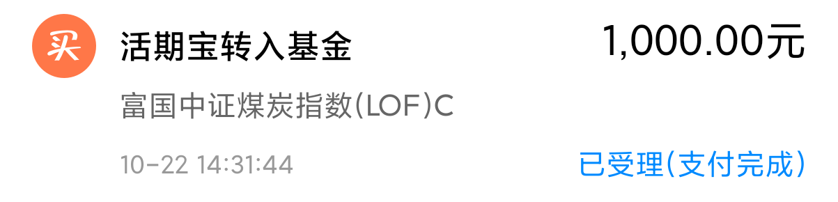 买进1000的 $富国中证煤炭指数(LOF)C(OTCFUND|013275)$