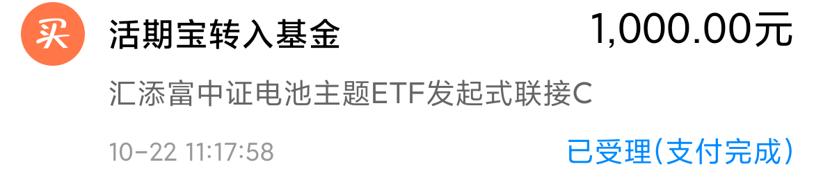买进1000的 $汇添富中证电池主题ETF发起式联接C(OTCFUND|012863)$